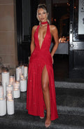 Robe longue Melania - Rouge pailleté
