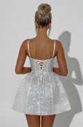 Indulge in luxury with the Angelique Mini Dress in ivory. Made from premium non-stretch satin, its fully lined design is encrusted with multi-shape hotfix rhinestones, creating a dazzling effect. The square neckline and adjustable straps exude elegance, while the lace up back and invisible zipper fastening adds a touch of sophistication. Perfect for any occasion, the mini length adds a playful yet chic touch to your ensemble.