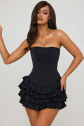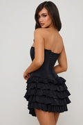 Bandeau Ruffled Tiered Corset Mini Dress in Black