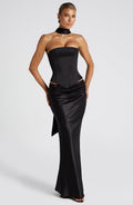 The Constance Corset in Black is a striking and bold piece that exudes confidence and elegance. Crafted from non-stretch satin, this corset features a structured bodice with boning for a flattering, sculpted fit. The corseted lace-up back adds a touch of drama and ensures an adjustable, customised fit. The Constance Corset can be styled with the Atlanta Maxi Skirt for a timelessly glamorous look. Pair it with the Sybil Scarf for an elevated ensemble.