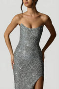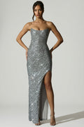 Classic glamour with a signature twist. Our Kaleena gown is the perfect option for special occasions and festive parties, crafted from premium stretch mesh for a supportive, figure-hugging fit, it’s framed with a curved bandeau neckline and features built-in boning for enhanced shaping. It’s embellished with scores of sequins for endless sparkle that you have to see to believe.