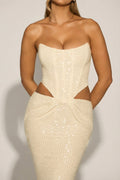 Embellished Cut-Out Draped Corset Gown in White