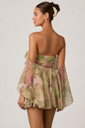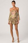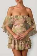 Off-Shoulder Ruffled Mini Dress in Floral Multi Print