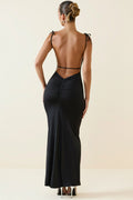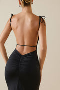 Ruched Backless Maxi Dress in Black