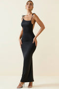 Subtle statements. The perfect option for dinner dates, the Devika maxi dress is crafted from our buttery soft and stretchy slinky jersey to a sleek column silhouette, framed with adjustable tie shoulder straps and a low open back with figure-enhancing ruching. It’s complete with a perfectly placed central godet pleat that creates volume at the back.